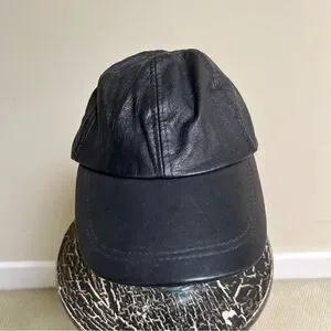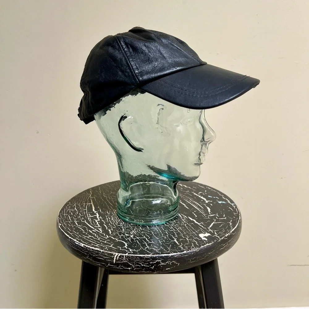 Details: black genuine leather baseball hat. No tag. Versatile adjustable sizing. Long brim.