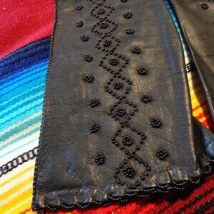 Leather Beaded 14" Evening Dress Gloves Vintage Diamond Pattern Elegant Demure !