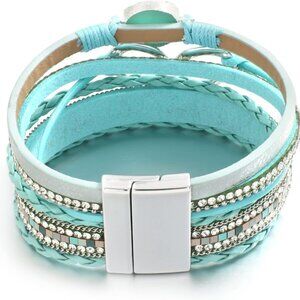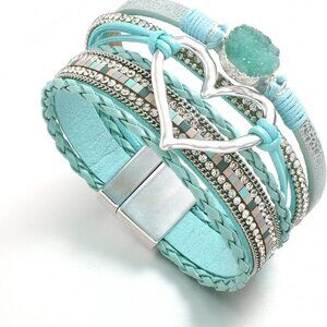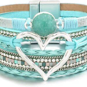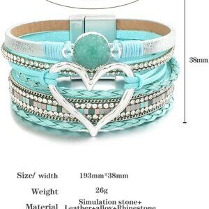 Features: Multi-strand leather design accented with rhinestones and a heart-shaped alloy charm. Weighs just 26g, so it's super lightweight and comfy all day long. No clasp needed—just slip it on for easy wear.