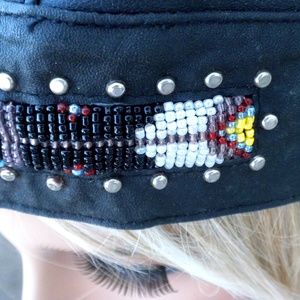 Leather Beaded Studded Cap Hat