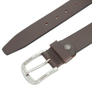 Leather Belt For Men with Classic Heavy Silver Buckle, Brown Belt