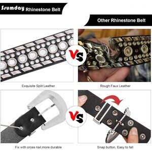 Features: Crafted from durable genuine leather with a shiny, scratch-resistant silver buckle. Triple-row rhinestone clusters give it a dazzling, head-turning shine. Unisex design with a width of 1.5" makes it versatile for men and women. Perfect for festivals, concerts, or dressing up your everyday outfits.