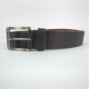 Leather Belt Skull Celtic Knot Embossed Silver Tone Buckle Accent Size 46
