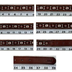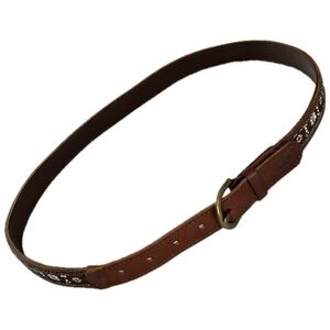 Leather Belt Western Boho Beaded Floral Brown Slim 38.5 x 1 Abercrombie & Fitch