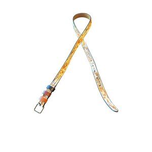 Crafted from genuine leather, this belt features a distinctive trio color loop design, enhancing its aesthetic appeal. The metal buckle secures the belt comfortably, making it a versatile accessory for various occasions. Made in China, the belt's unique pattern ensures a stylish look.