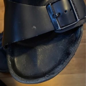 Women’s size EU 40 (US 9-9.5) in black leather. Width is considered regular/wide. Classic 2 strap design.