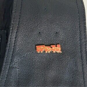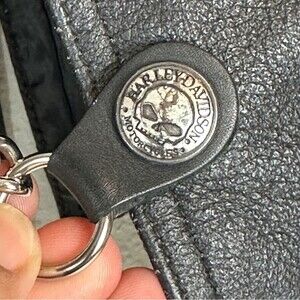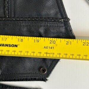 Toys for tots pin. Some holes from other pins no longer attached. Lace up sides. Harley Davidson chain attachment. Braided detailing. Front pockets. Gently pre-owned condition.