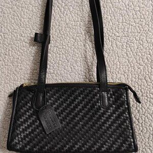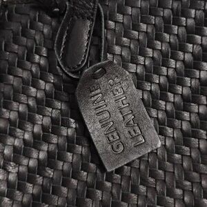 Leather Black Weaved Shoulder Bag