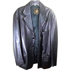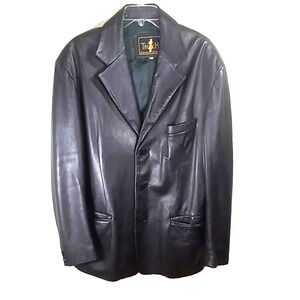 Leather Blazer Jacket Vera Pelle Italian X-Large Black VTG Retro See Condition