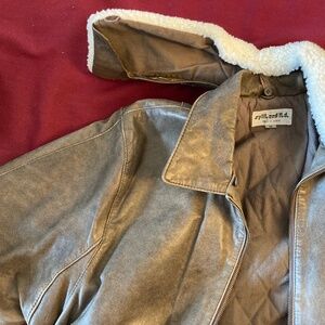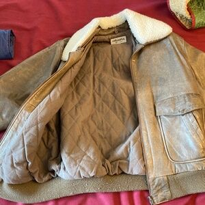 In good condition, some scratches and signs of wear. Has removable faux fleece collar cover. Four front pockets. Zippered front. Quilted interior.