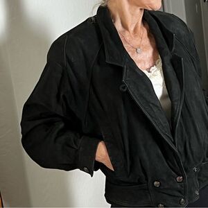 Vintage 80s 90s Drop Shoulder Adventure Bound Wilson’s Black leather Thinsulate Insulated Bomber Coat M Vintage 90s Adventure Bound by Wilson’s Black leather Adjustable Lightweight or Lined With Removable Thinsulate Zip Out Lining Oversized Bomber Biker Bikecore Drop Shoulder Nipped in Waist Coat