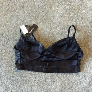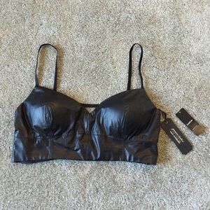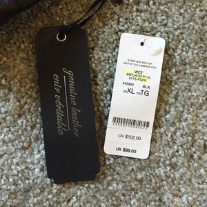 Bebe Leather Bra Top. GENUINE LEATHER! Elastic bands in the back. New, never worn. Tags attached. Size XL. ๐ฅ๐ฅ๐ฅ