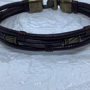 Leather Bracelet Unisex Fabric Leather Bangle Wrap Wristband Rope Brown