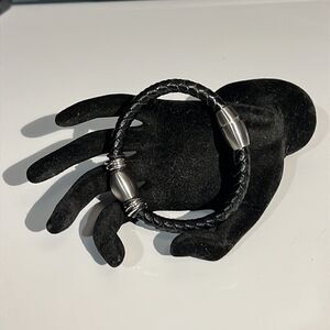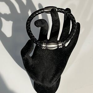Leather Braided Bracelet with Silver Tone Hardware & Magnetic Closure