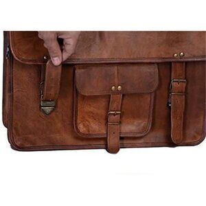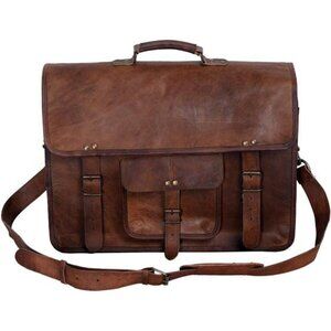 Leather Briefcase 18 inch laptop Messenger Shoulder Bag Office Satchel Brown