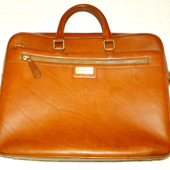 Beautiful, caramel leather briefcase/laptop carrier. Perfect for a professional looking to impress her coworkers or make a splash at a new job!