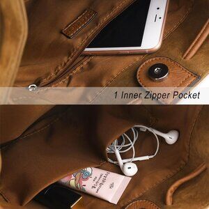 Features: Crafted with soft vegan suede leather, this spacious bucket tote has a stylish drawstring closure with delicate silver hardware. It offers a generous interior to hold daily essentials like cosmetics, water bottles, tablets, and more. Includes 1 zipper pocket and 2 slip pockets for organization, plus 2 detachable straps for shoulder or crossbody wear.