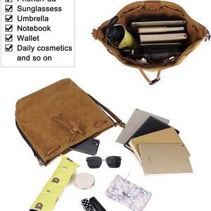 Leather Bucket Bag Crossbody Purse Women Medium Tote Hobo with 2 Straps