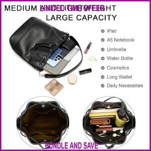 Style: Bucket tote and hobo handbag with drawstring and magnetic closure