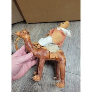 Leather Camel Figurine Set of 2 Camel Sahara Vintage Antique Hand-Stitched