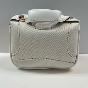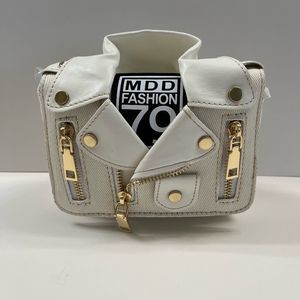 Leather & Canvas Jacket/ Biker Handbag Purse In Cream/White