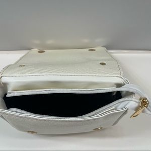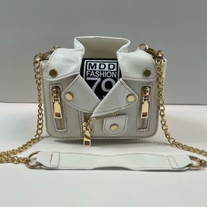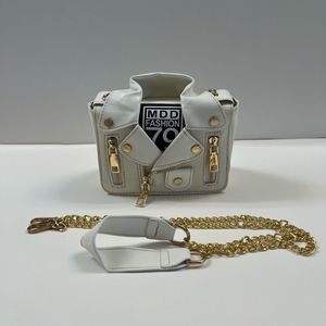 Leather & Canvas Jacket/ Biker Handbag Purse in Cream/White with Gold Accents and Zippers