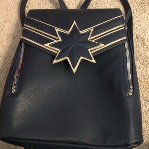Leather Captain Marvel Backpack. Brand new condition. Can be used with sides zipped up or down.