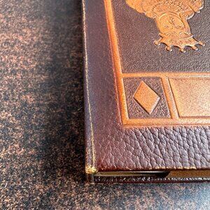 Good vintage condition. The leather case shows some wear and rubbing at the edges (see photos). The scorebook is unused and clean; both decks are intact.