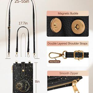 Features: Crafted from smooth leather, this versatile purse has a spacious phone pocket, multiple card slots with RFID blocking, and comes with two adjustable straps — perfect for switching up your look. The metal hardware, including zippers and buckles, adds a luxe feel. Water-resistant for daily wear.