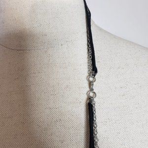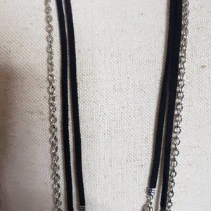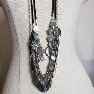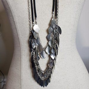 Leather & Chain Multi Strand Leaf Tassel Long Necklace 36"