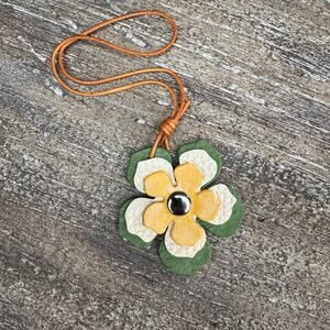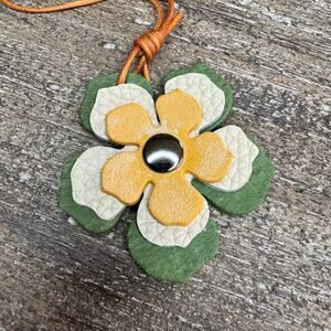 This is a genuine leather charm. It is NEW with tags, and it’s a flower charm with bright colors and a leather cord.