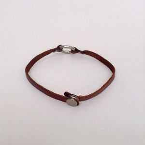 Real leather choker with button snap closure. Very durable.