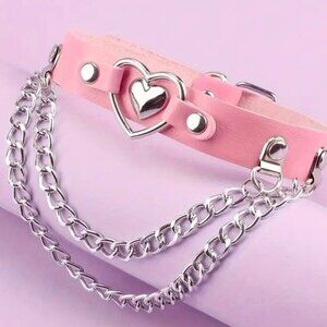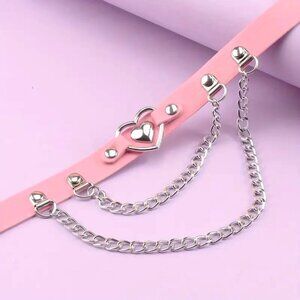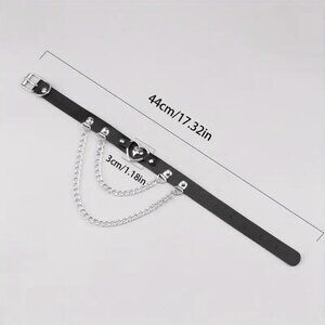 Leather Choker Collar Necklace Bondage Emo Rave Role Play Heart Chains Cosplay
