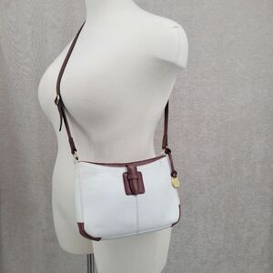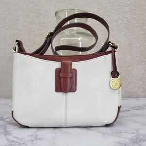 Leather Co by Liz Claiborne White and Brown Leather Shoulder Crossbody Bag Vtg