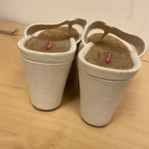 Take out beach hat and get ready for some adventures in this Prada platform wedges. With a full vacation vibe in check, these wedges are styled into a thong upper with white leather trims and a cork platform wedges keeping the look on these slip-on sandals well balanced.
