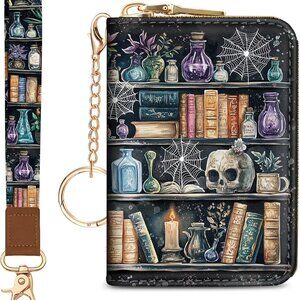 Unique Style: Express your individuality with our credit card holder that featuring stylish pattern: goth magic bookshelf skeleton print, creating a mysterious and fantastic atmosphere. Complement your unique style in a fashionable way with cute small card wallet