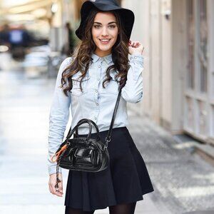 Features: This structured leather crossbody features a retro Boston-inspired design with three pockets. The spacious main compartment with a zipper, plus two front magnetic snap pockets, keep your essentials organized and easily accessible. Perfect for carrying your phone, keys, wallet, cosmetics, and more. The silver-tone hardware adds a touch of elegance.