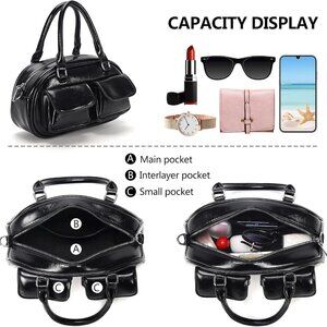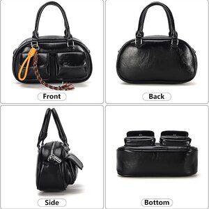 Leather Crossbody Bag Women Retro Boston Style Organizer Small Shoulder Purse