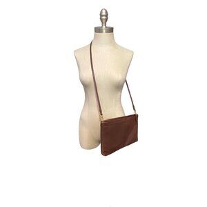 Leather Crossbody Clutch with Removable Strap in Brown with Gold Accents 11"x 7"