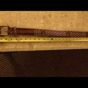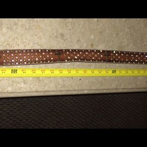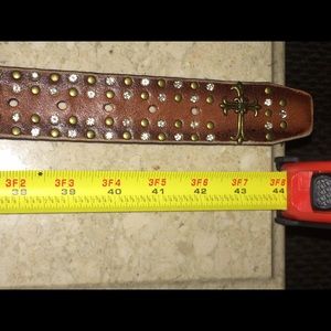 Beautiful Belt All leather laden with Crystals & Brass.... size as shown on measure tape.. a steal of a deal.. extra Crystals attached & sealed in back.Uniquely made & price is Firm unless bundled.. then the % will be totaled. No longer fits me, as well as every belt for sale.. π’