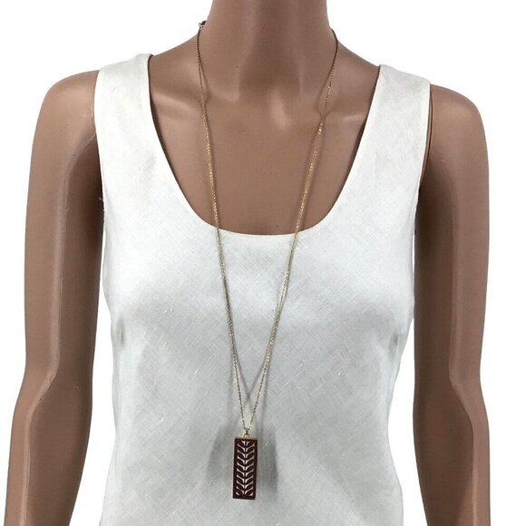 Leather Cut Out Pendant Leaves Leaf Brown Gold Tone