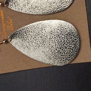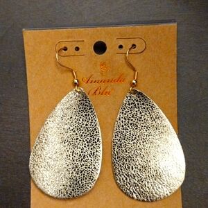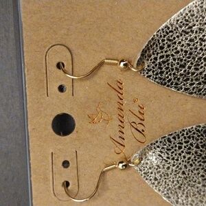 Leather Dangle Earrings Leather Gold -Teardrop - Amanda Blue NWT