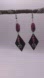 Handmade with buffalo hide leather, hand stamped into a diamond shape and then hand dyed with black leather dye. I then applied a satin finish to seal and protect the leather. They also have oval and round pink crazy lace agate gemstone beads and antique silver flower charms and findings. They also have antique silver ear wires and are very light weight.