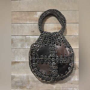 Leather Double big Woven 60s Vintage boho rustic handbag tote