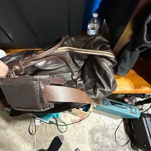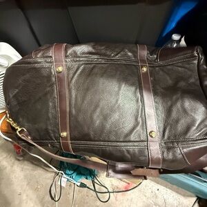 Experience the rugged elegance of the Leather Duffel Bag. Crafted in a rich brown hue, this bag is perfect for the modern man on the go. Heavy duty zipper and handles. Very nice $100