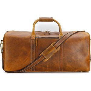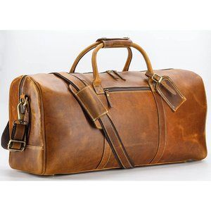 100% REAL BUFFALO LEATHER - This rugged Leather duffel bag is made from 100% real hunter buffalo leather and is handcrafted. With time the color, texture and character get richer. The leather ages beautifully.