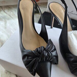 Excellent condition worn once for a short time. Feminine style with bow. Purchased at Saks sold out in this color