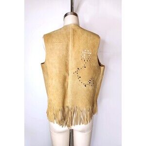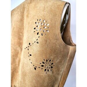 Leather FRINGES Perforates Floral Leather Vest Southwestern Western Unisex S M