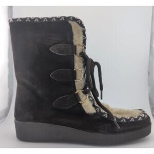 Item condition: Gently used condition. Light wear to the suede on the exterior and minor signs of wear on the outsoles. No visible holes, stains, or major damage to the leather or lining. The shearling interior is plush and intact.