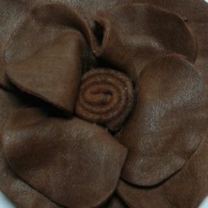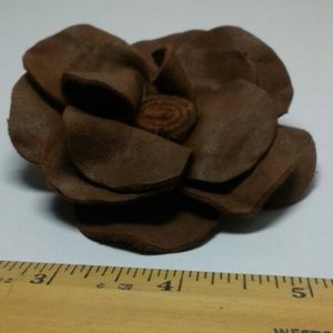 Handmade Leather Flower Pin in chocolate brown.